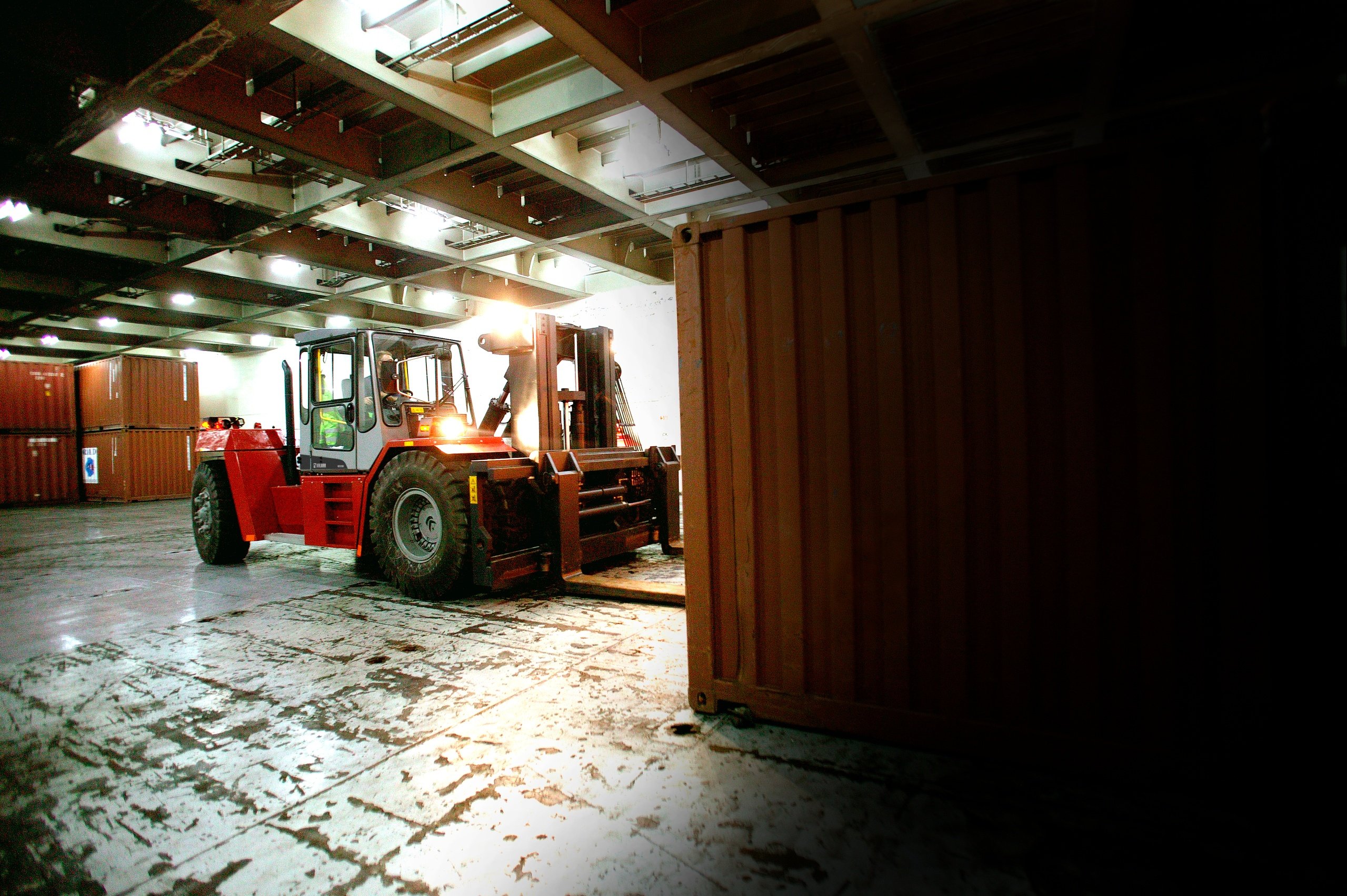 Kalmar and Messina worked together to adapt and achieve exacting specifications required to fit the physical constraints within the new ships' RoRo holds. The mast had to be less than 5350mm and capable of lifting 33,000kg. As such, the forklifts have been equipped with an extra-low triplex free lift mast.