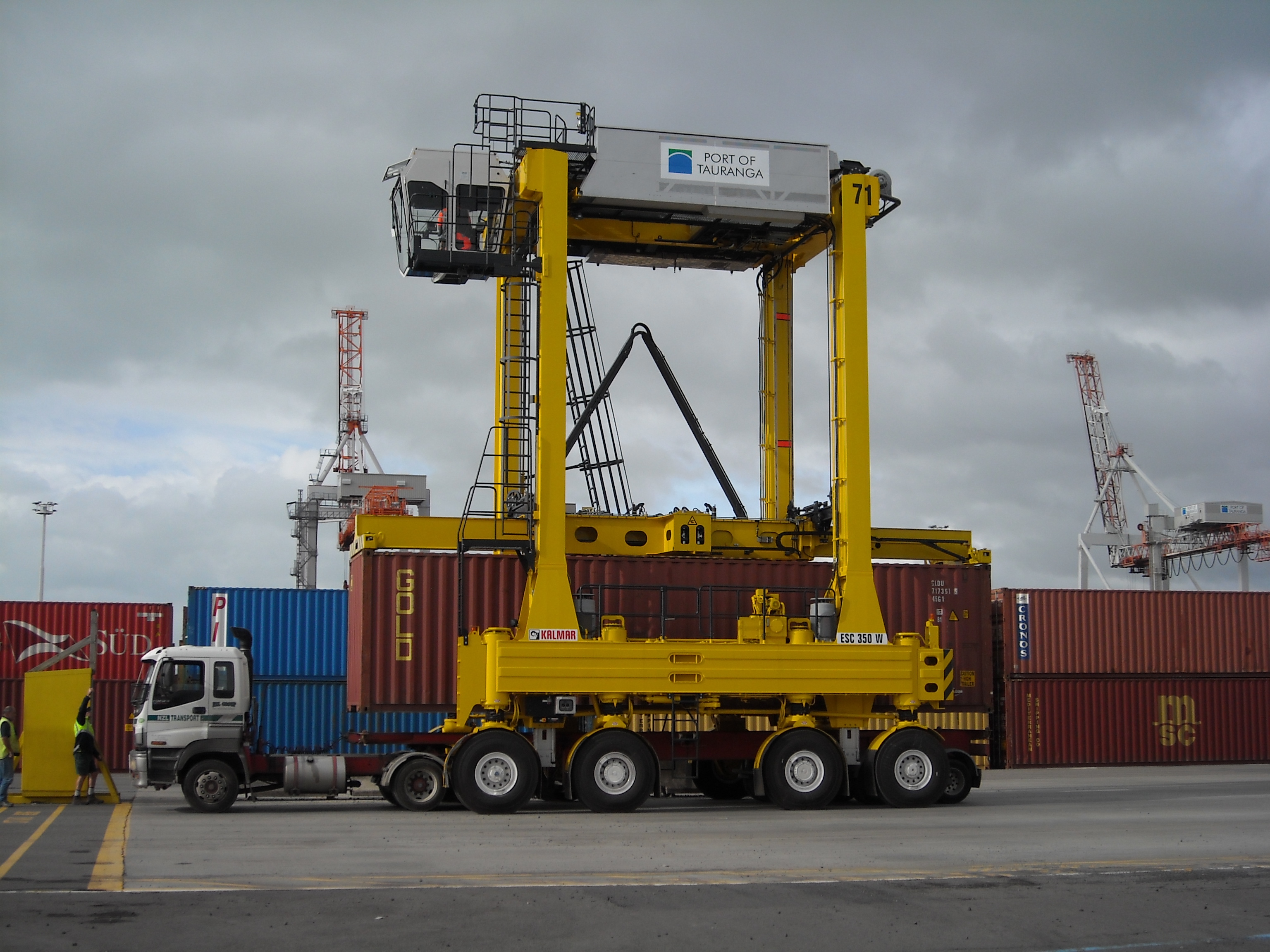 Port of Tauranga currently operates a fleet of 28 Kalmar straddle carriers. The straddle carriers are used for loading road trucks and rail wagons, as well as for transporting containers to and from the quay cranes. The Port of Tauranga has been gradually switching over to diesel-electric straddle carriers to reduce the environmental impact of their operations. The terminal is also using Terminal Operating System (TOS) from Navis, part of Cargotec.