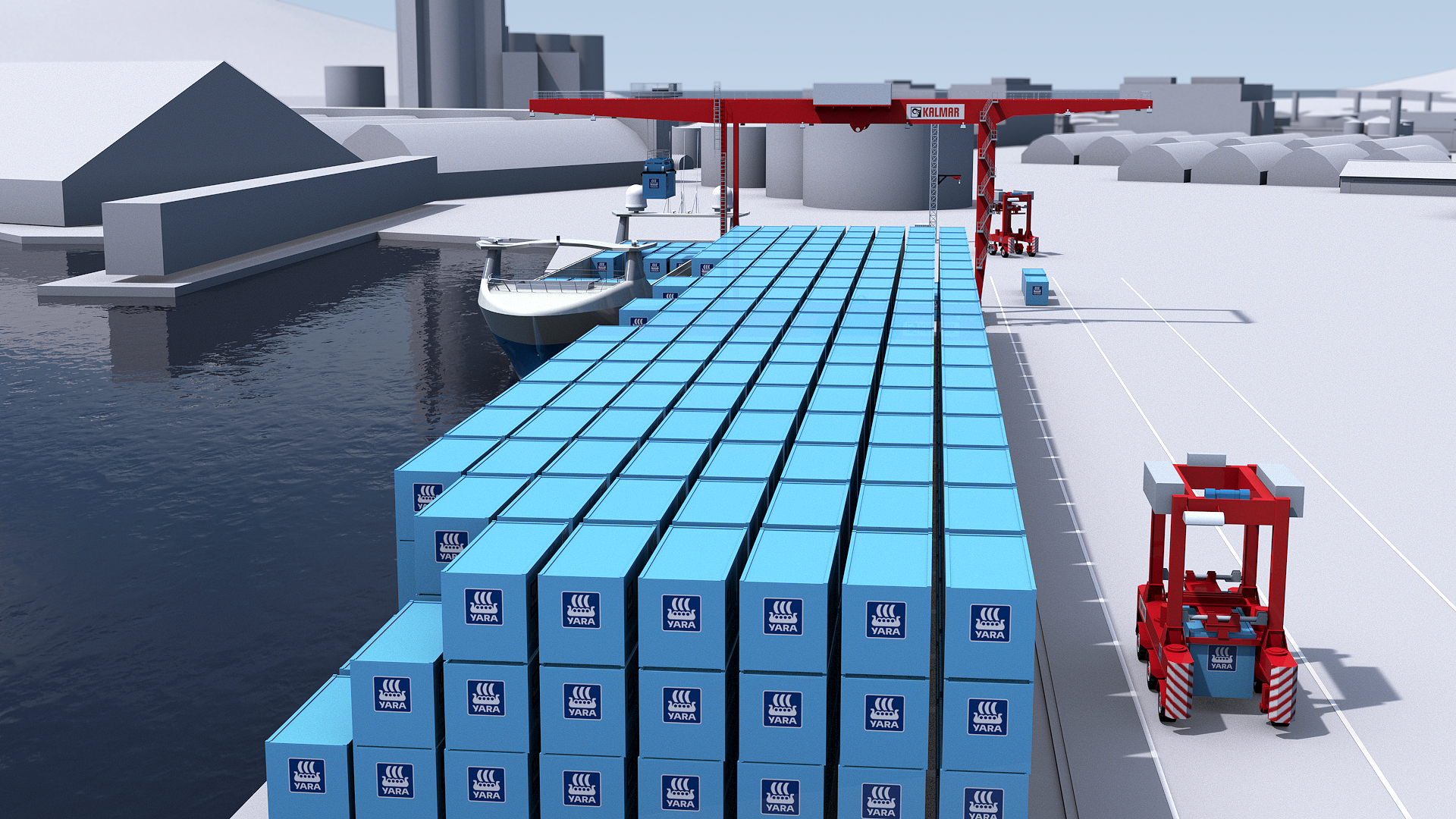Kalmar will provide the autonomous loading and unloading solution for Yara Birkeland, as well as transportation between the fertilizer production facilities and the quay. The Kalmar solution consists of one Kalmar Automated Rail Mounted Gantry Crane (AutoRMG), three Kalmar FastCharge™ AutoStrad™, a FastCharge charging station and related automation and safety systems. The solution will be implemented in phases, with the level of automation gradually increased over time. The end result will be a fully autonomous, mixed-traffic and zero-emission solution in an industrial environment.