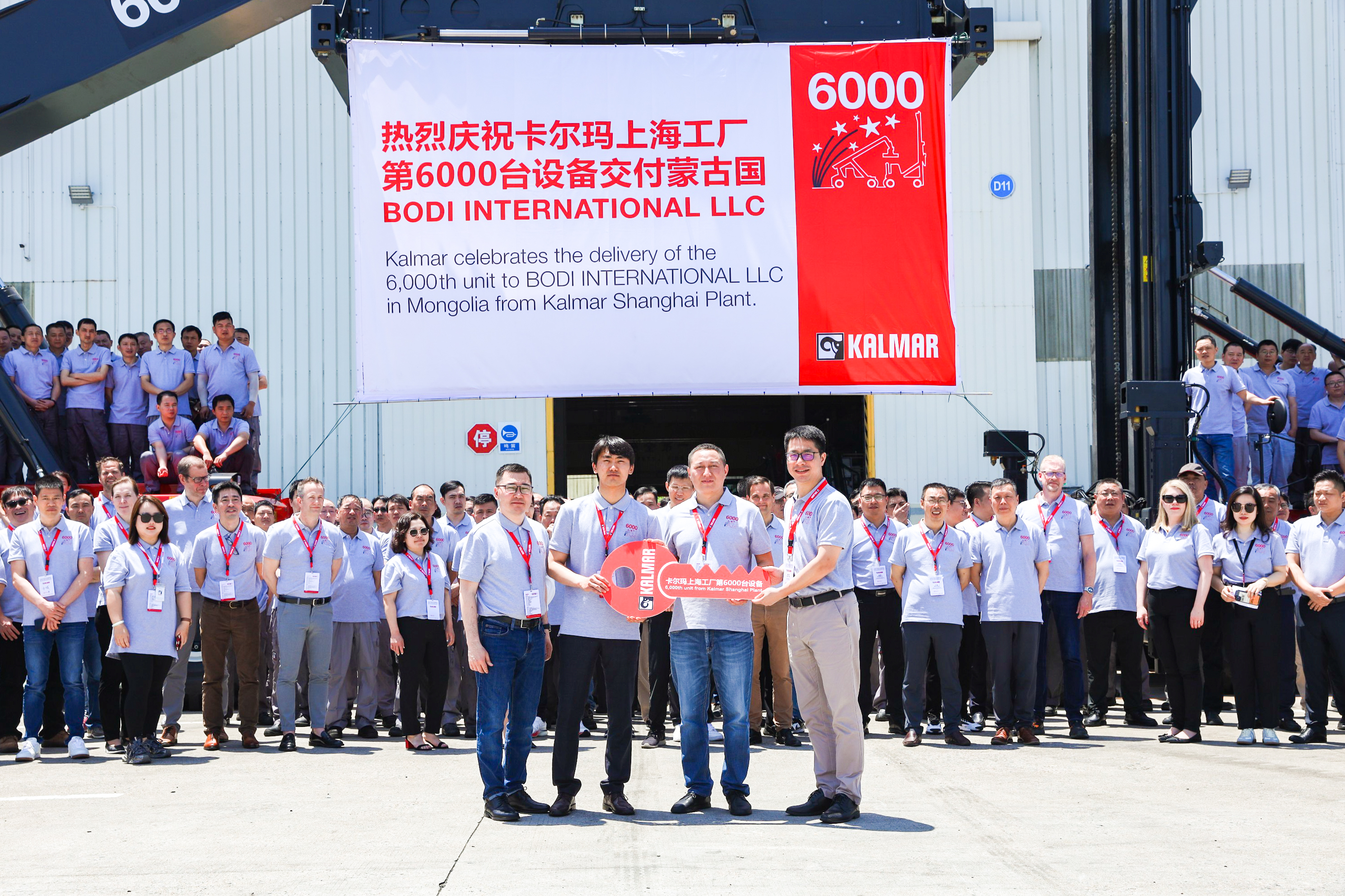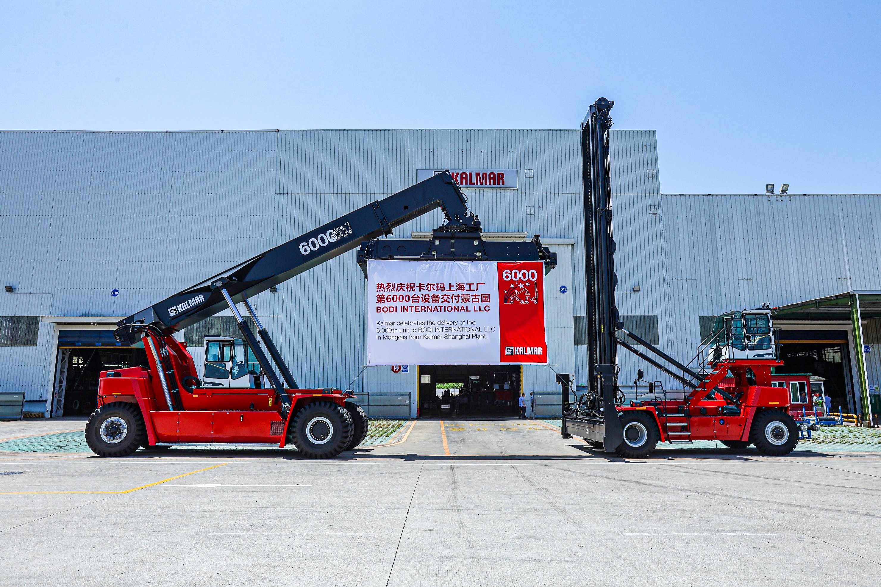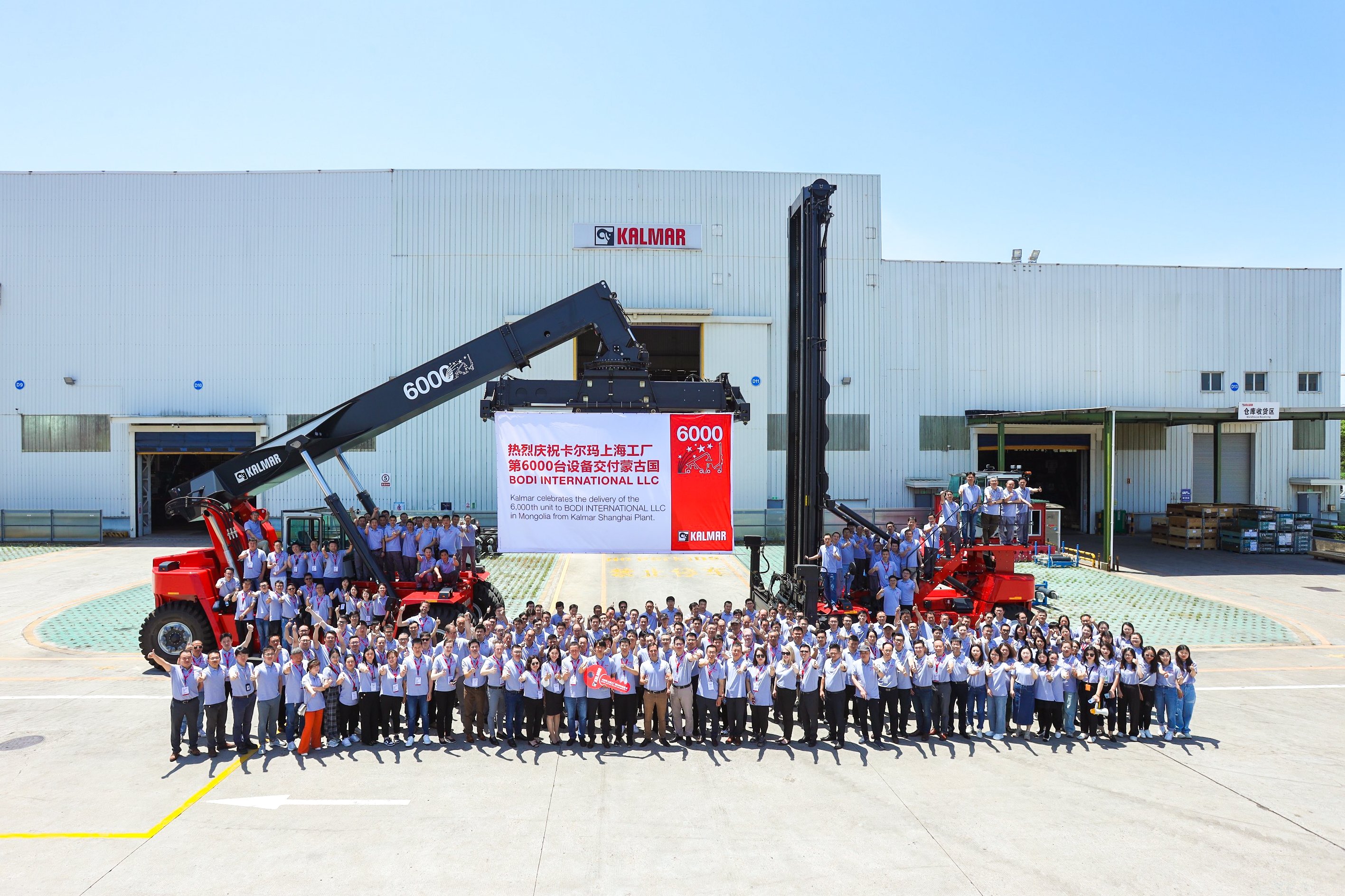 Kalmar, part of Cargotec, is celebrating a significant milestone with the completion of the 6,000th machine, a reachstacker, at its manufacturing plant in Shanghai, China. Destined for Bodi International LLC in Mongolia, the machine was completed on 25 May 2023. The customers, employees, Kalmar dealers from Greater China and other guests joined a special event to celebrate the achievement.